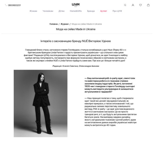 Гламурний блиск страз, натхнення старим Голлівудом, стильна колаборація у дусі Нью-Йорку 60-х з британським брендом Linda Farrow і гордість презентувати українське – що спільного між цими фактами? Редакція ЦУМу поспілкувалася з Вікторією Удіною, щоб дізнатися, як одяг її молодого лейблу здобув світову популярність…